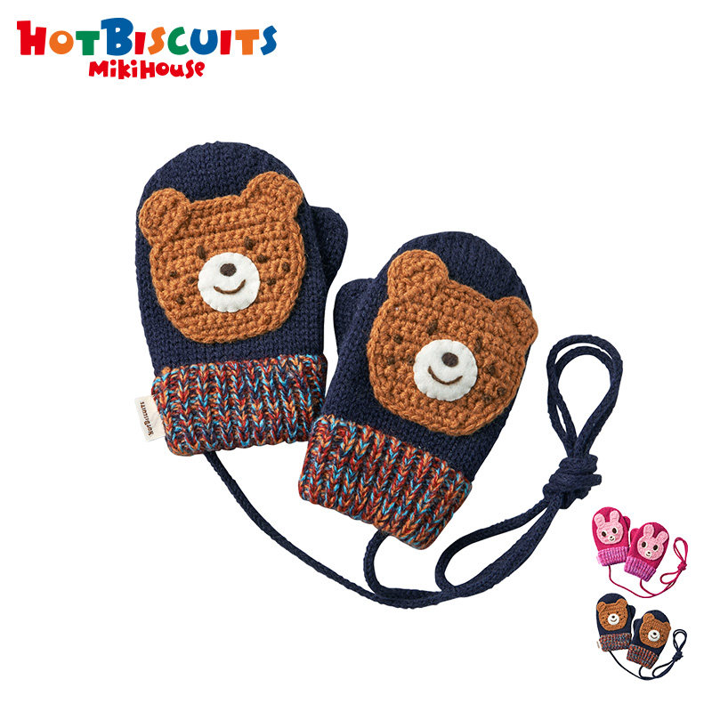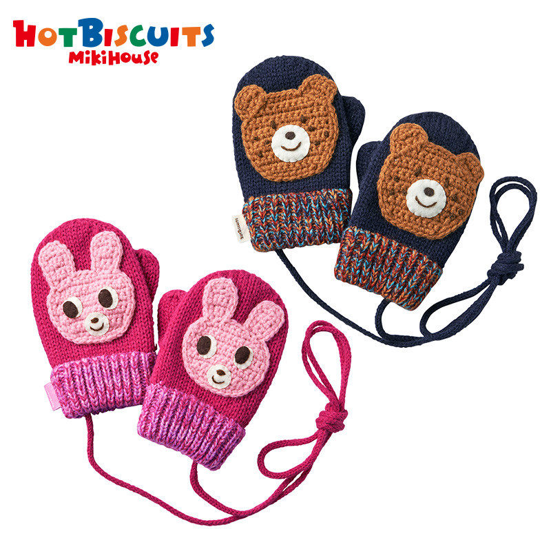 MIKIHOUSE HOT BISCUITS BOY WARM CARTOON WITH POINTER WOVEN GLOVES WINTER SET GOODS