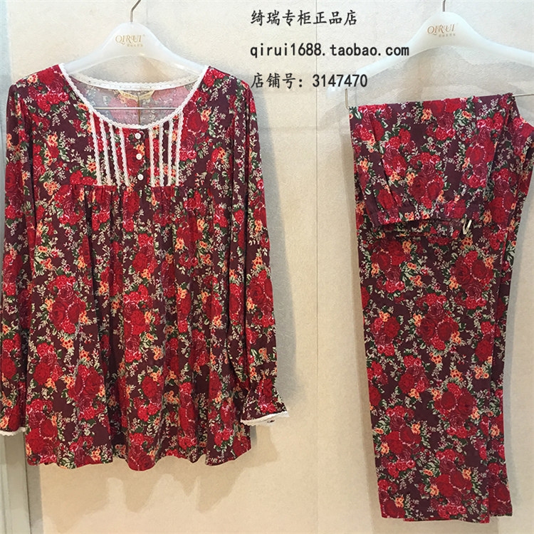 Chi Rui Home Clothing Lady Model Pajama Mother elegant Chinese wind printing sleepdress long skirt