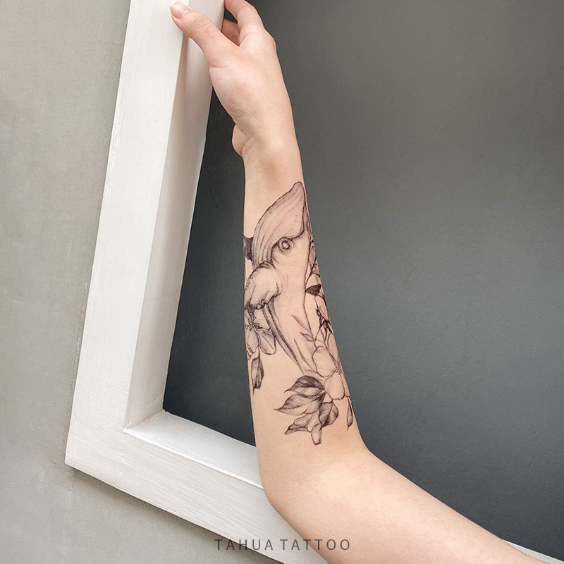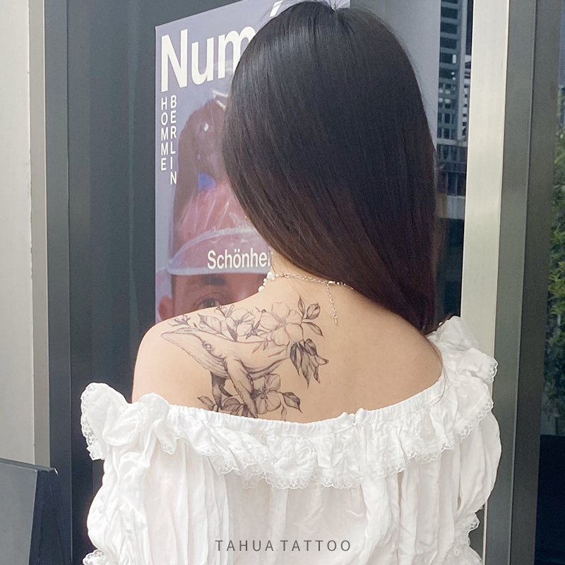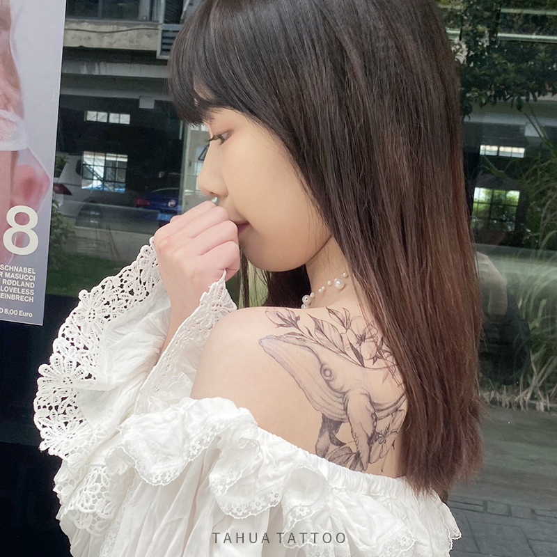 She painted the whale Haitang Flower arm tattooed with fish pattern arm male waterproof and persistent female chest front thigh net red