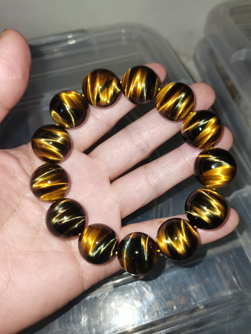 Tiger Stone Bracelet Natural Yellow Tiger Eye Stone Bracelet Yellow Tiger Eye Crystal Bracelet Men's and Women's Blue and Yellow Two-color