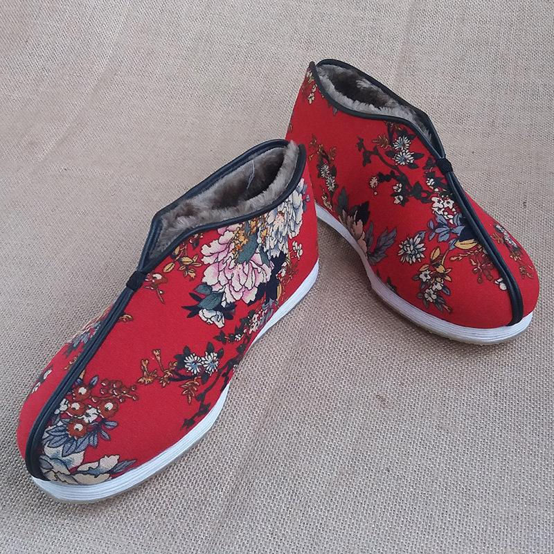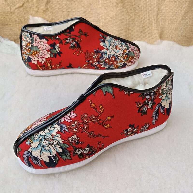 Chinese retro old Beijing cloth shoes women's handmade Melaleuca bottom mother mother sheepskin wool one-piece cloth walking color cotton shoes
