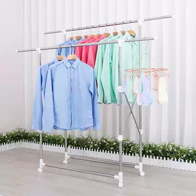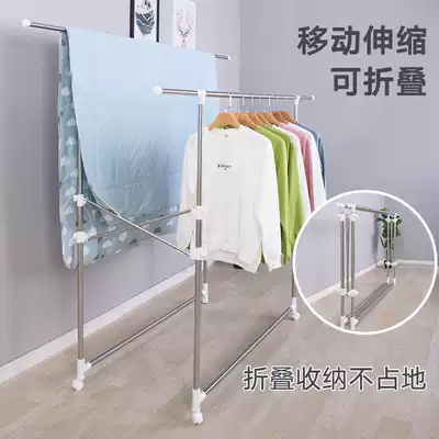 Clothes rack Floor-to-ceiling stainless steel indoor telescopic double-pole household drying quilt rack Outdoor folding balcony drying rack