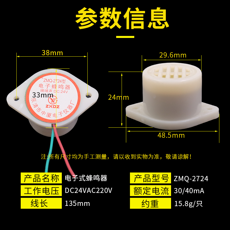 Small miniature electronic message louder buzzer siren 2724 drop sound AC220V AC DC 24V DC