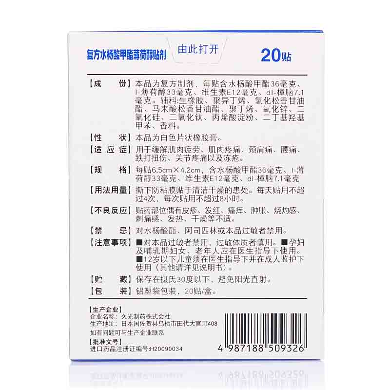 Japan Jiuguang Plaster Salombas Love compound methyl salicylate menthol patch 20 patches for muscle and joint pain