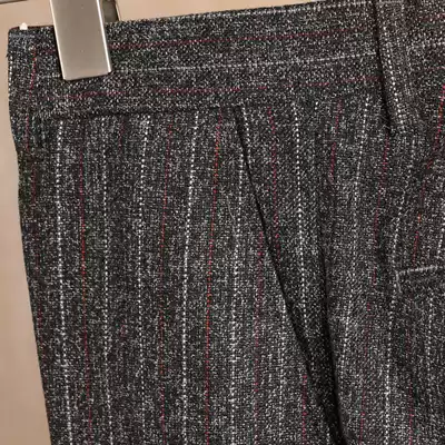 IsirHonour vintage English style dark gray red and white vertical stripes slim trousers European and American casual long pants men