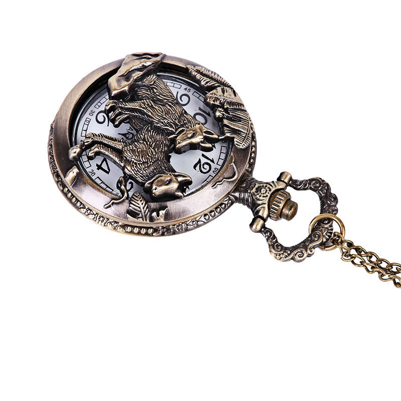 Large Number Ancient Bronze Color Engraving Zodiac Animal Dog Quartz Watches Nostalgic Retro Style Loyalty Dog Watches 6588