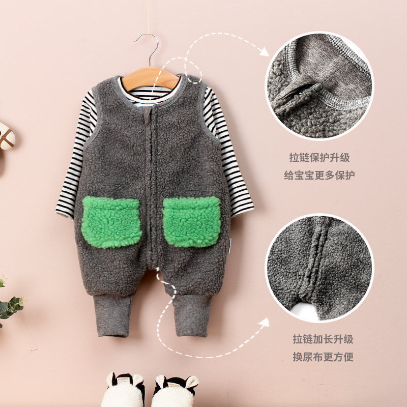 Babybag pants winter baby lamb suede baby even body pants warm autumn and winter thickened bracelet boy sleeveless and sweaters