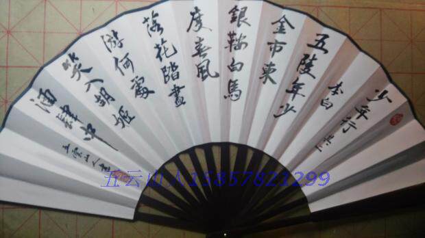 High-grade chicken wing wood bamboo core folding fan 10-inch Wuyun Mountain people hand-written calligraphy authentic inscription Rice paper fan