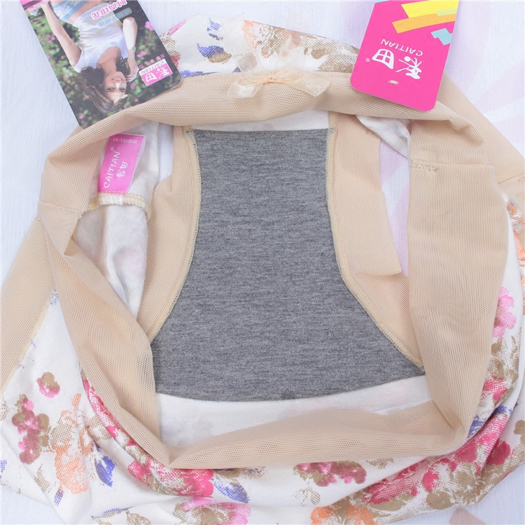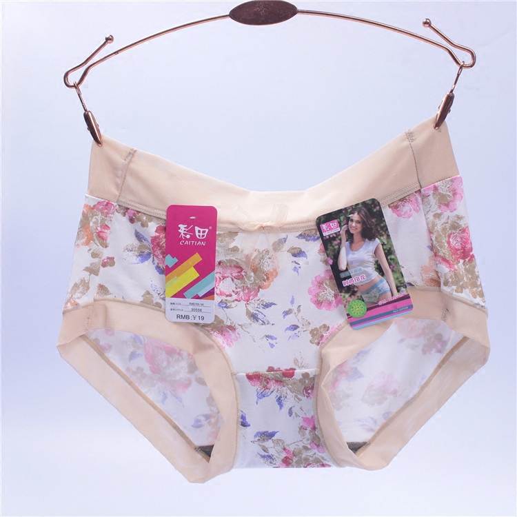 Color Field Briefs Women Comfort Modale Crushed Flowers Pure Cotton Bamboo Charcoal Fabric Crotch Red Mid Waist High Waisted Four-corner Pants
