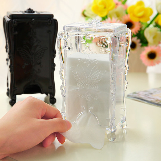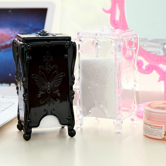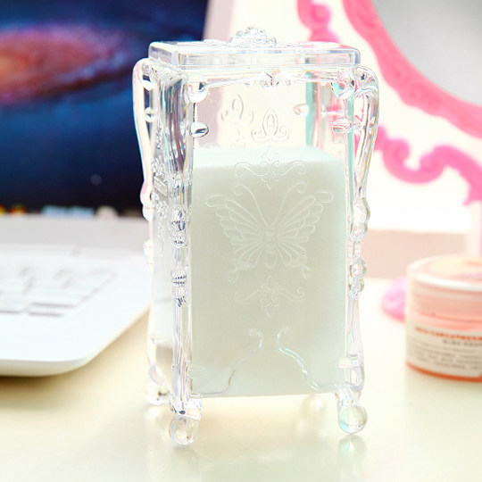 3717 Retro Covered Tabletop Makeup Cotton Containing Box Transparent Plastic Box Cosmetic Containing Finishing Box