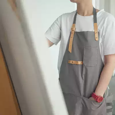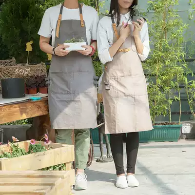Shude coffee shop apron simple cotton craftsman clothing milk tea baking shop overalls literary Korean version