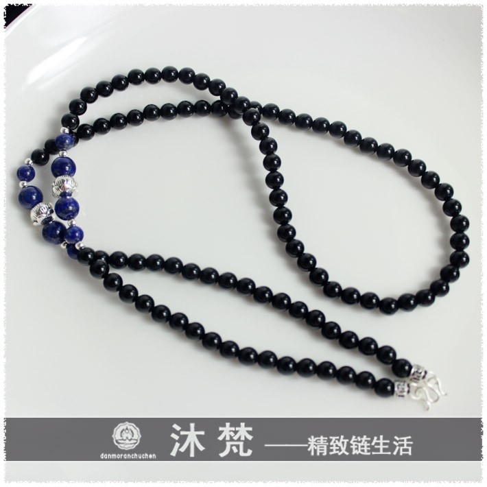 Buddha card chain Thai Buddha brand special hanging chain 4mm6mm agate lapis lazuli 925 sterling silver handmade silver does not fade