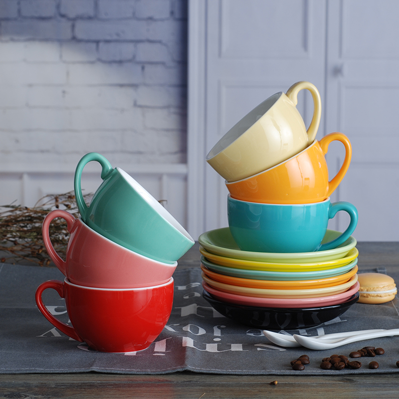 Naughty Xuan European-style ceramic colour glazed coffee cup Saucer Cubuccino With Iron Cup Cappuccino Cups Customizable