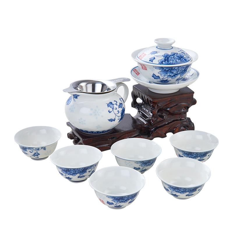 Gold Foci Green Flower Peony Pattern Cover Bowl Tasting Cup Kung Fu Tea Tea Tea Tea Tea Tea Cup Suit
