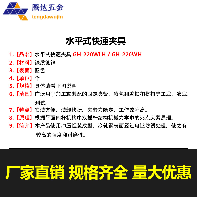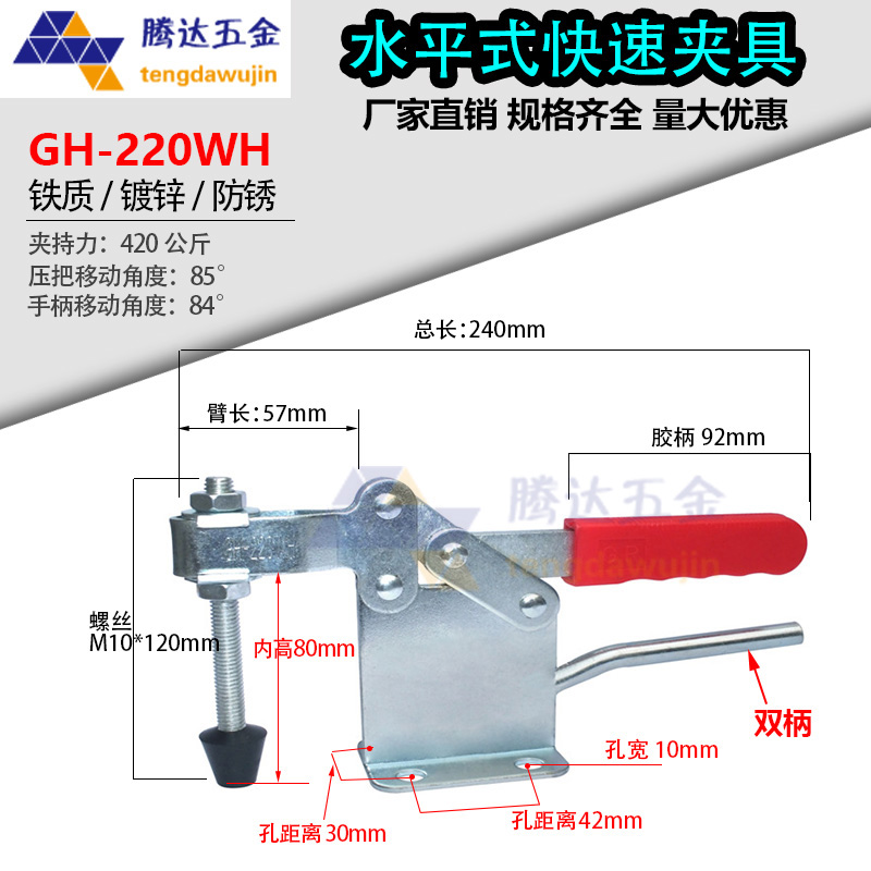 Quick fixture Horizontal GH220WH 200WLH woodworking clamping press fixture Double handle puzzle clip Assembly clip