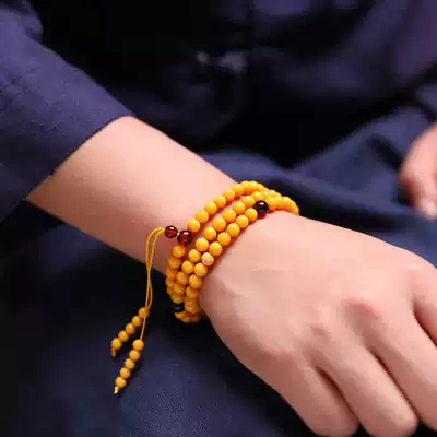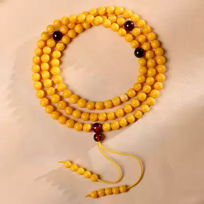 Xiangzhenfu natural Old Beeswax handstring 108 beads original stone Amber hand male chicken oil yellow necklace female