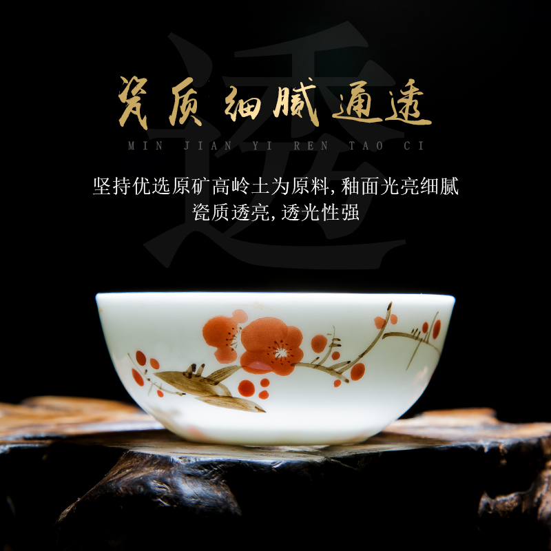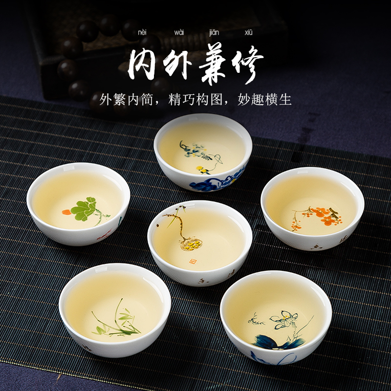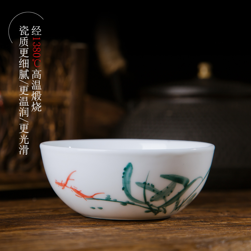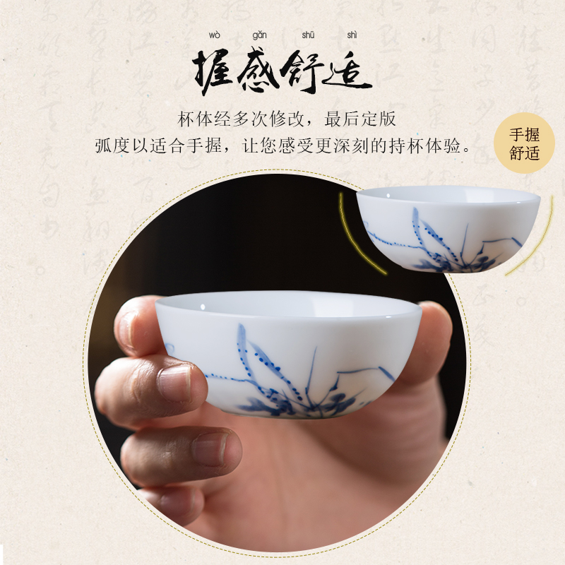 Folk artists hand-painted blue and white porcelain Pu 'er cup Jingdezhen ceramic pastel kung fu tea cup fighting color master cup single cup