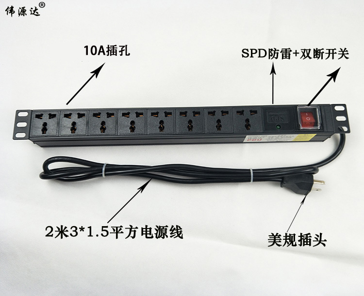 pdu met-gauge plug PDU socket 8 bits 16A lightning protection cabinet special multipurpose power supply row plug high power wiring board-Taobao