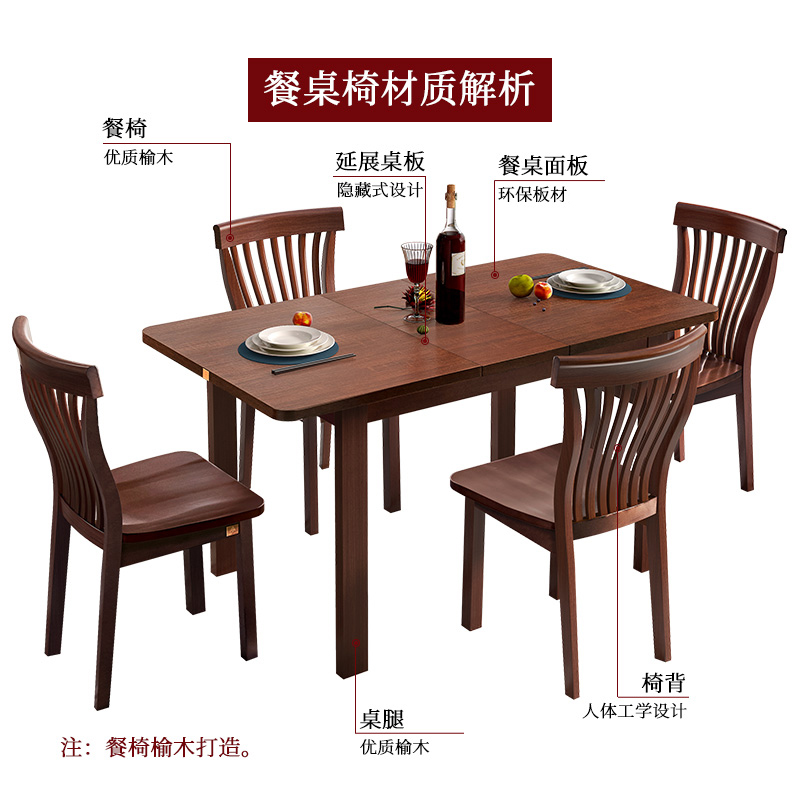 Tiantan furniture dining table multifunctional rectangular modern simple mocha Elm Wood Wood stretch small apartment table K