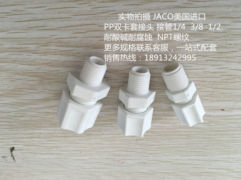 PP US-made clamping sleeve joint PP double cutting sleeve joint resistant to acid-alkali corrosion straight through outer silk 1 4 3 8 1 2