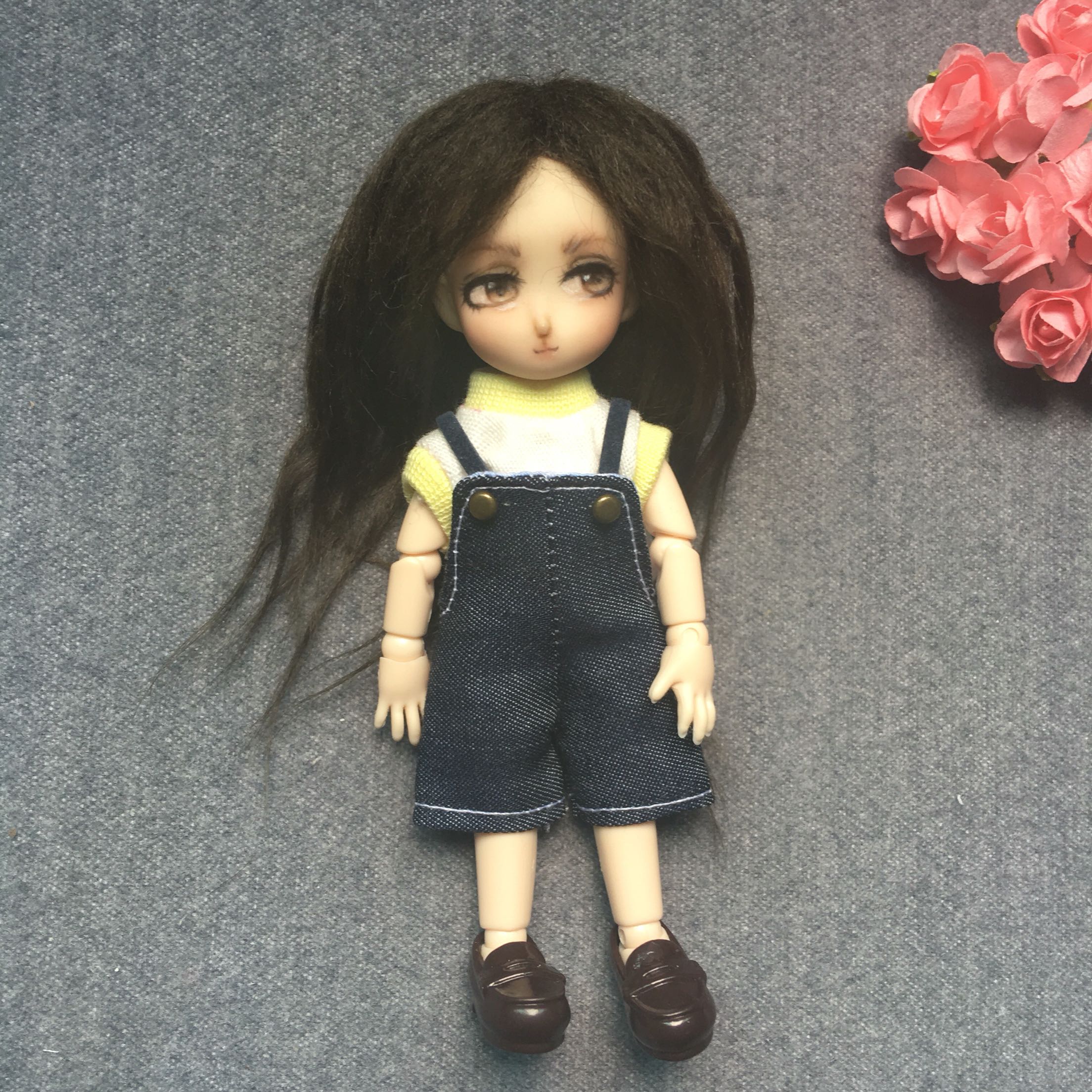 (3 * 1mm double-sided suede leather rope) bjd salon small cloth ob11 doll with baby bag pants shoulder strap child rope