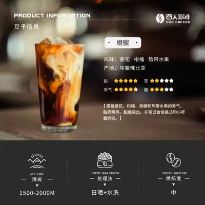 Four-person orange honey 4 0 boutique Italian blending concentrated fruit increased sweetness coffee beans 454g non-hand
