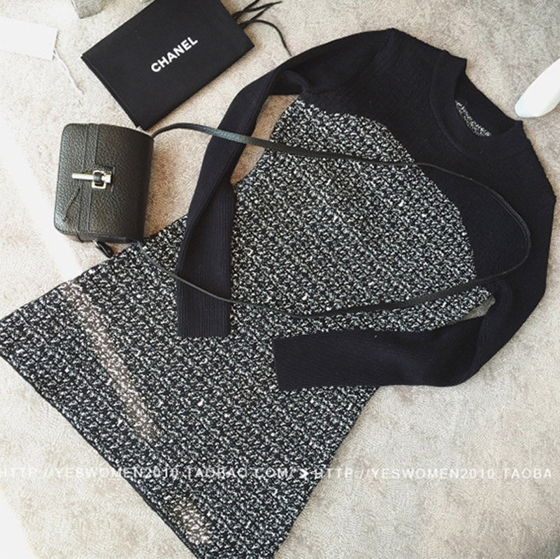 2020 autumn and winter women's long-sleeved knitted dress autumn and winter models in the long version of the large size a-type false two-piece bag hip base skirt