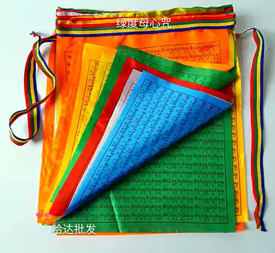 Green mother heart mantra sutra flag colorful silk sutra flag horizontal hanging 21 sheets with 6 meters and 5 lengths Buddhist craft gift decoration treasurer recommended