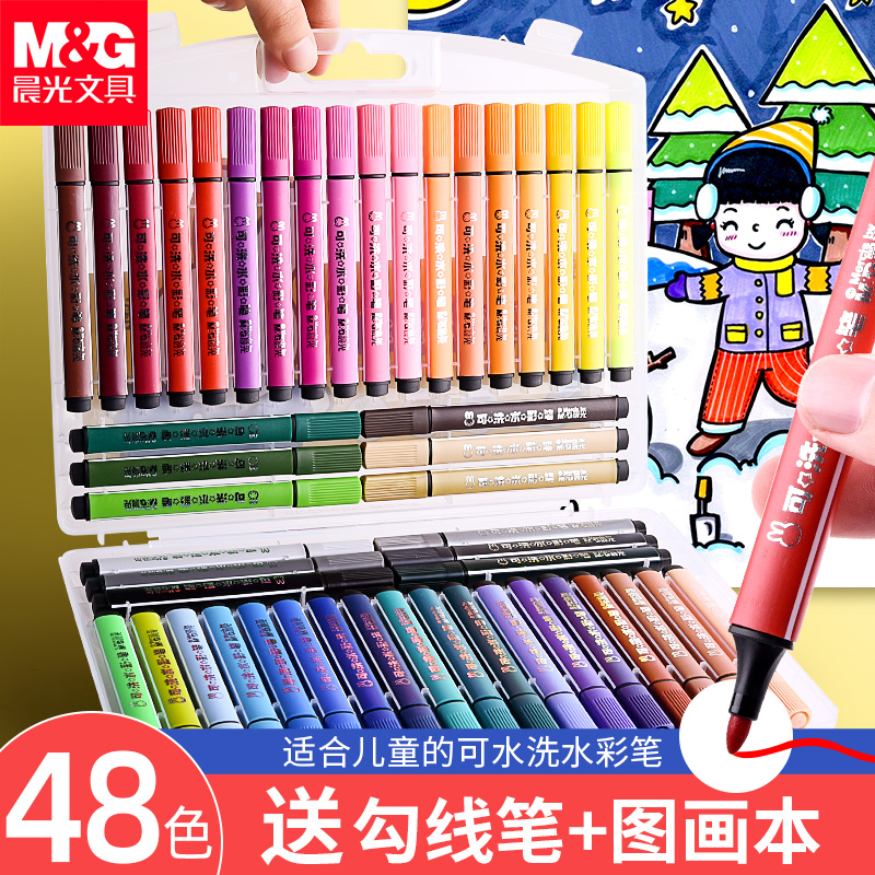 Morning light watercolor pen set 36 colors kindergarten children's painting brush Primary school students with painting 48 water brushes color brush baby graffiti pen Safe and non-toxic washable soft head color pen 24 colors 12