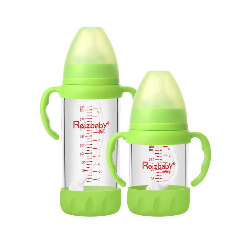 Yunzhibei glass bottle wide caliber baby bottle nipple with handle straw milk tube large capacity drinking cup