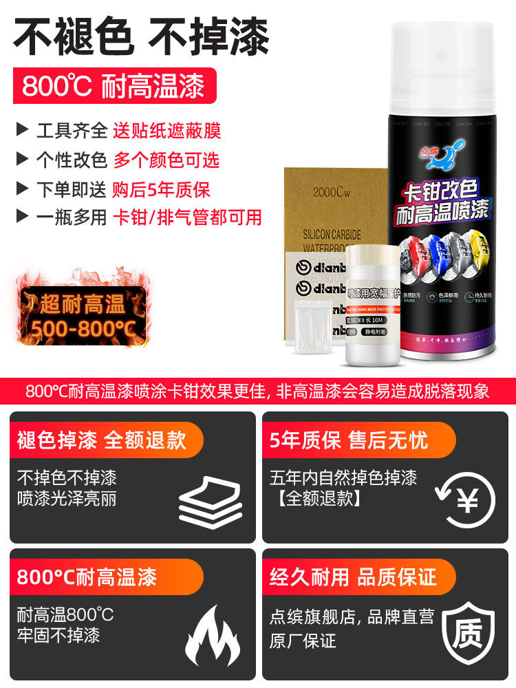 5-star red -800 ° (Send Caliper Sticker Shield Tool) 450 ml High temperature lacquer can spray 4 steel black -800 ° (Send Caliper Sticker Shield Tool) 450 ml High temperature