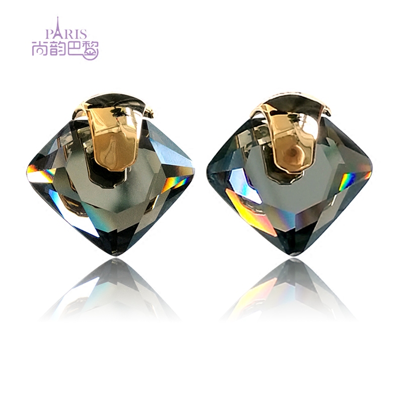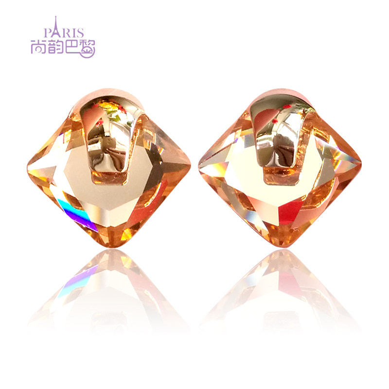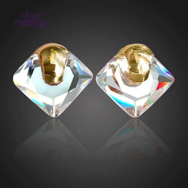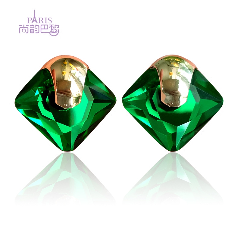 Korean version simple fashion atmosphere petty bourgeoisie shiny big earrings temperament white-collar pomegranate red rhombus anti-allergic earrings ear clips