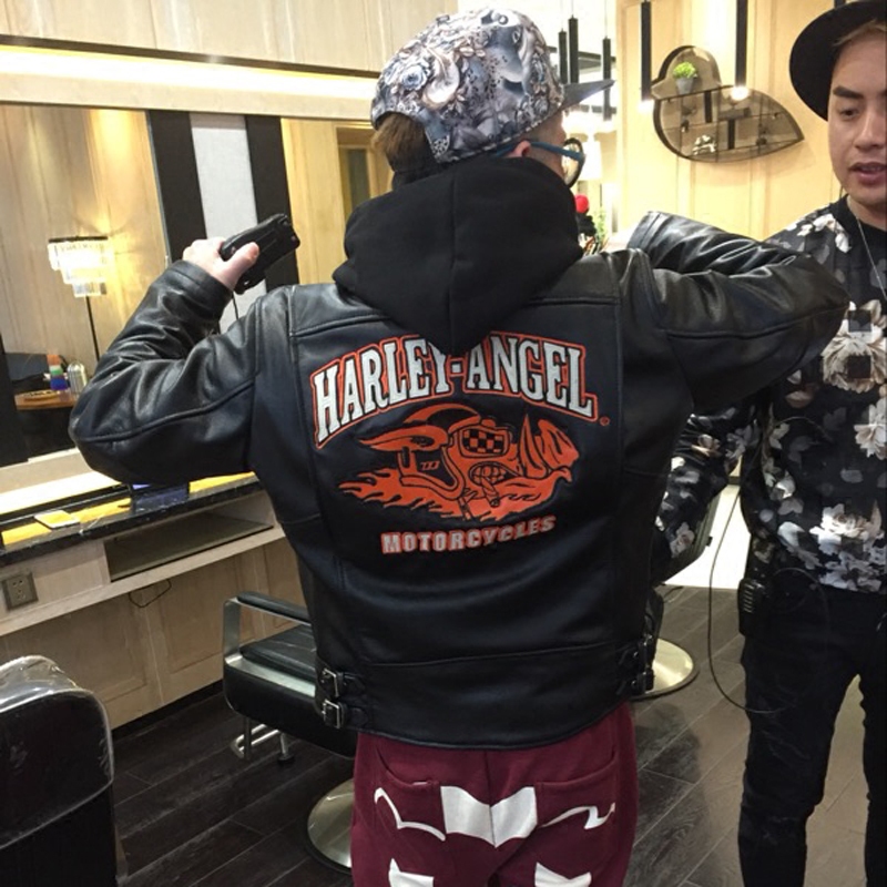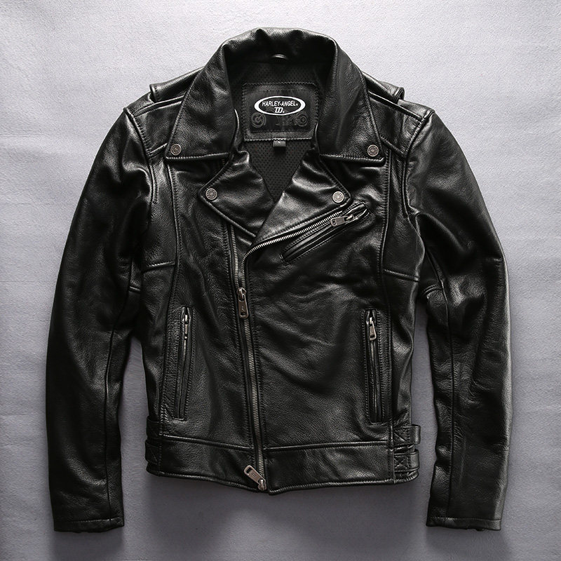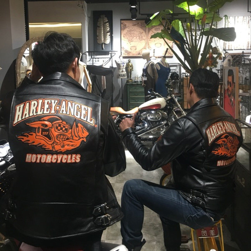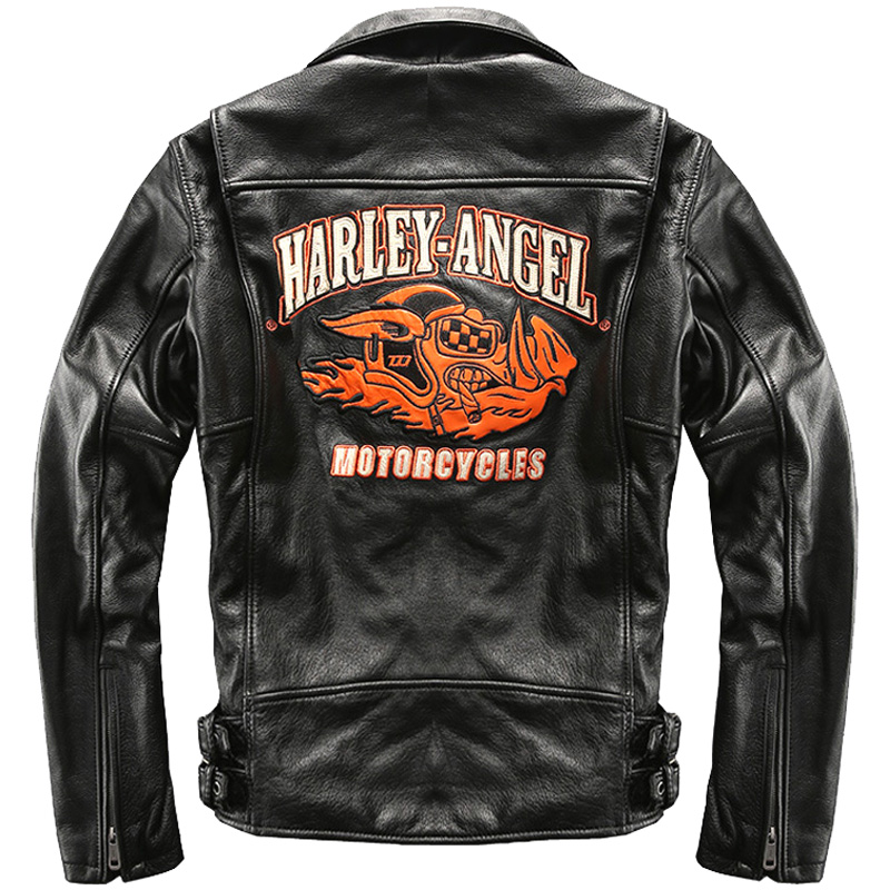 Harley motorcycle riding locomotive clothing men's leather jacket top layer cowhide jacket lapel zipper embroidered jacket