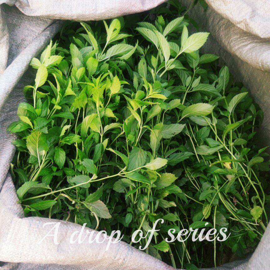 Fresh green mint branch leaves grow year round to extract green mint essential oil pure dew material