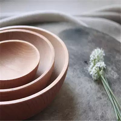 Japanese salad bowl home whole wooden bowl solid wood fruit vegetable bowl large creative storage wooden bowl children natural beech wood