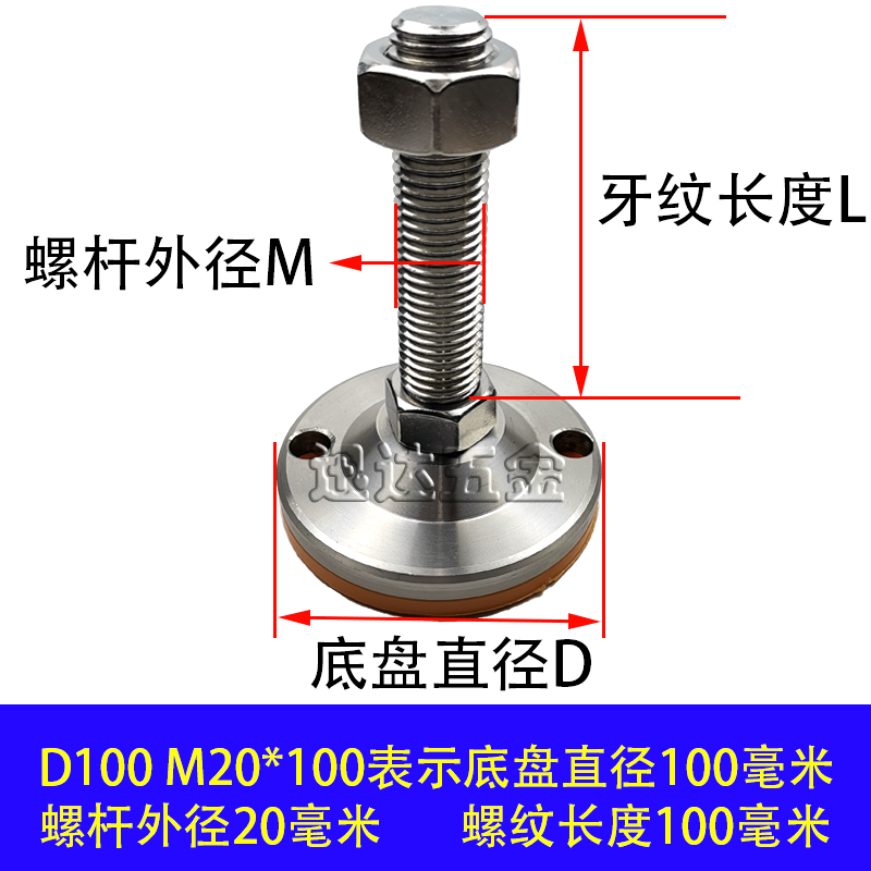 Stainless steel 304 heavy orange anti-slip damping adjustment foot waterproof corrosion resistant equipment support foot horizontal footed cup