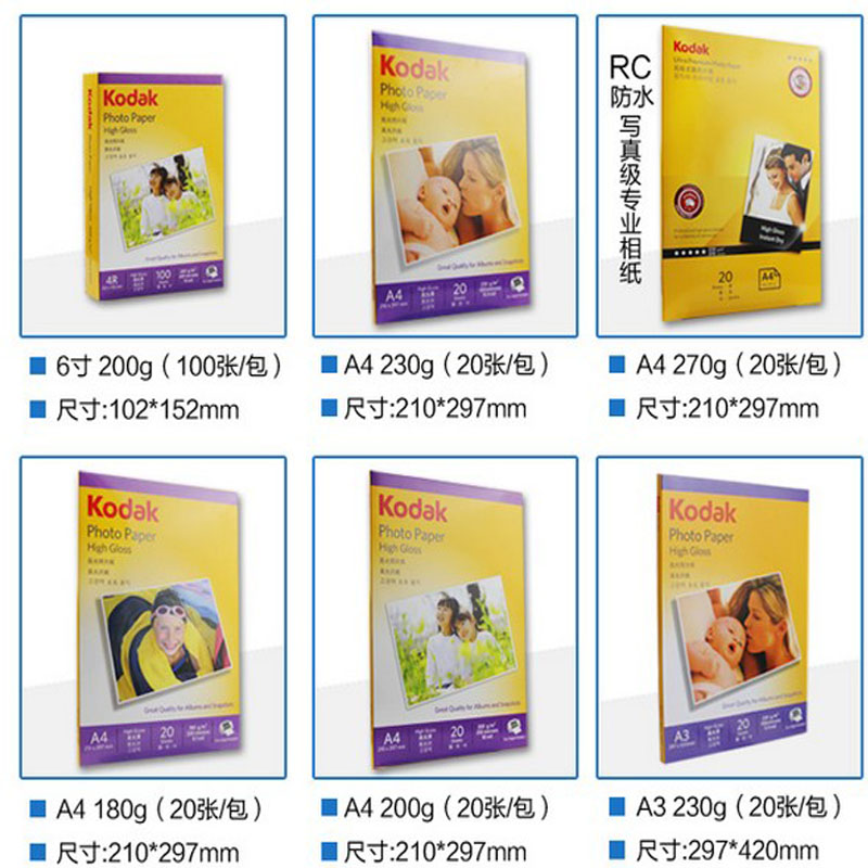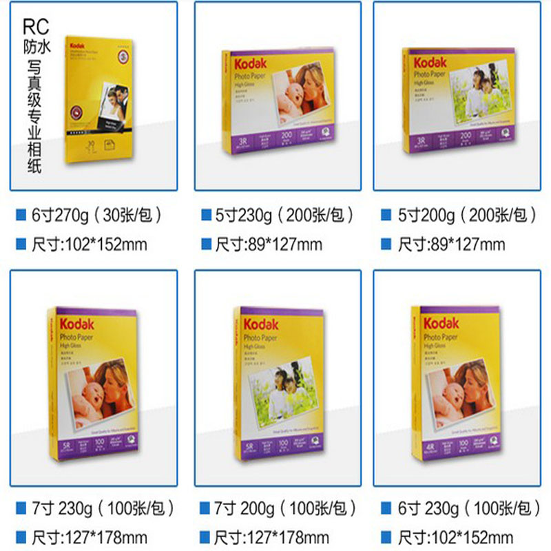 5 inch 200 grams of high-light photo paper (200 sheets) 5 inches 230 grams of high-light photo paper (200 packs) 6 inches 180 grams of high-light photo paper (20 packs) 6 inches 200 grams high