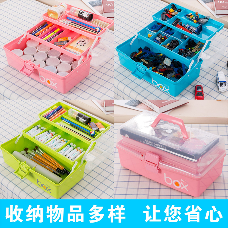 Art supplies toolbox Multi-function drawing box Large three-layer portable children's drawing primary school student storage box