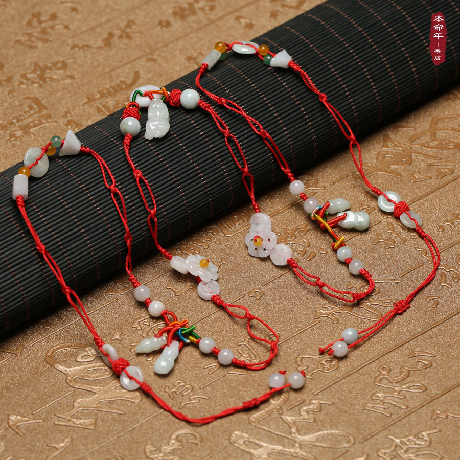 The No. 1 shop of the year of birth, natural emerald, jade waist chain, good fortune and good luck, red rope waist chain, new for men and women
