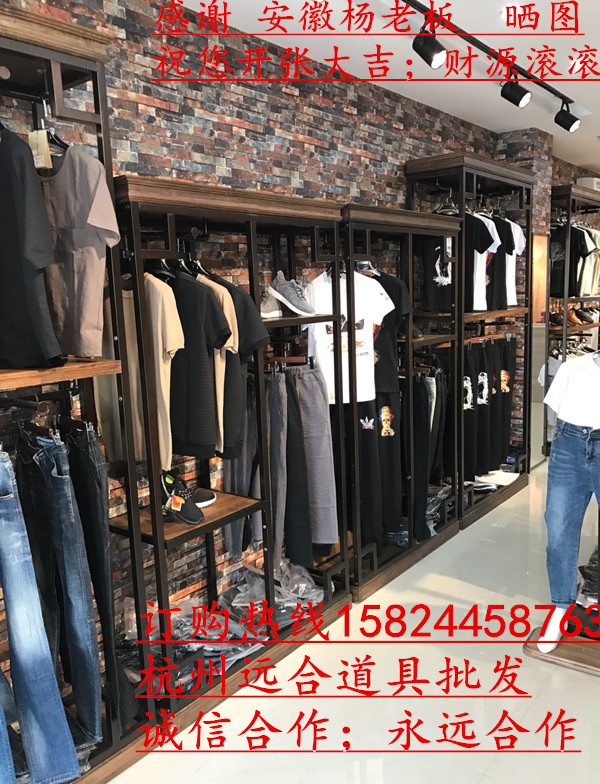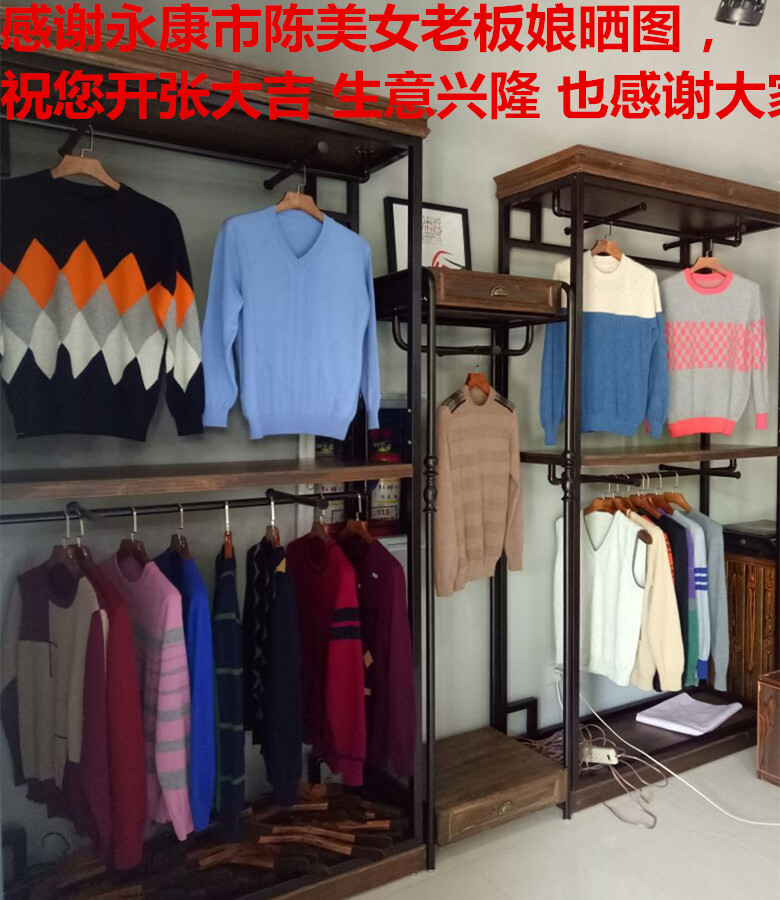Clothing Store Men And Women Clothes Hanger Show Shelves Landing Style Iron Art Elevated Retro Solid Wood Middle Island Positive Side Hanging Clothes Shelves