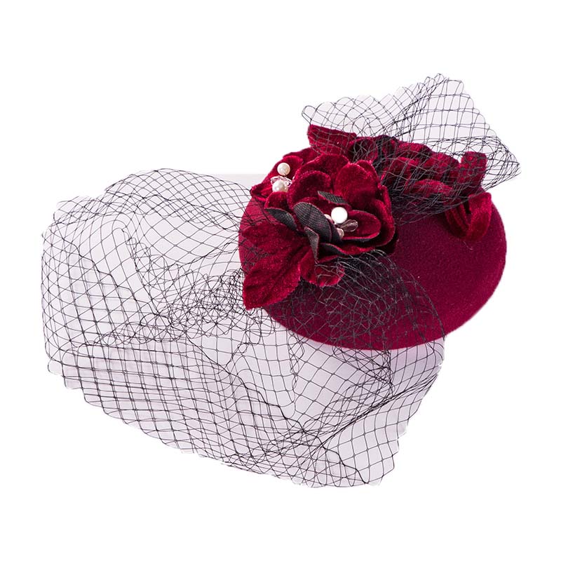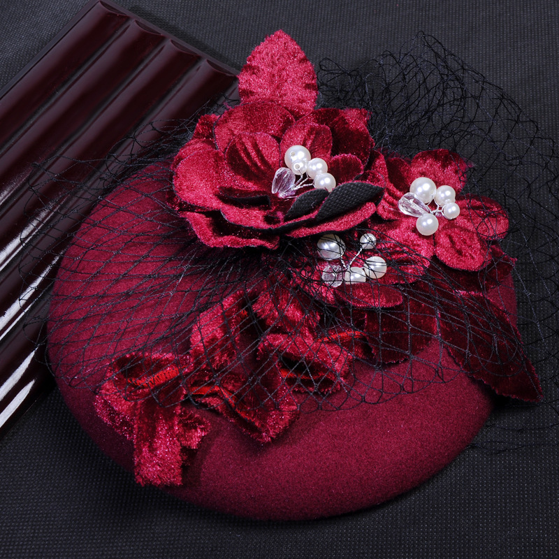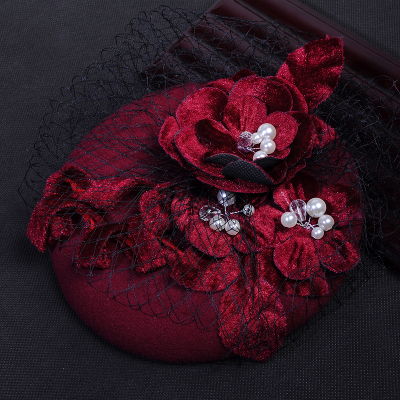 Korean bridal headwear wine red mesh top hat dinner party retro cover hair accessories wedding dress accessories