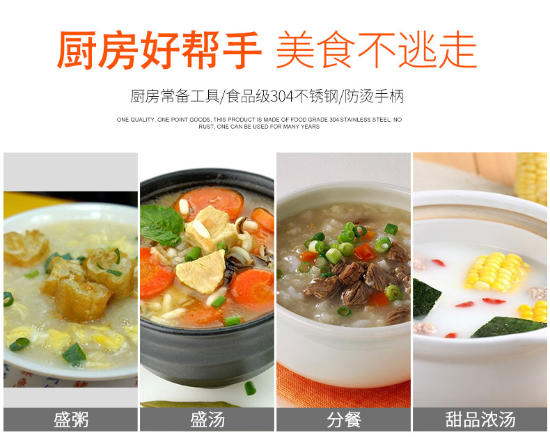 Thickened one 304 stainless steel large soup spoon long handle home stir-fry spoon serving porridge spoon kitchen cooking kitchenware