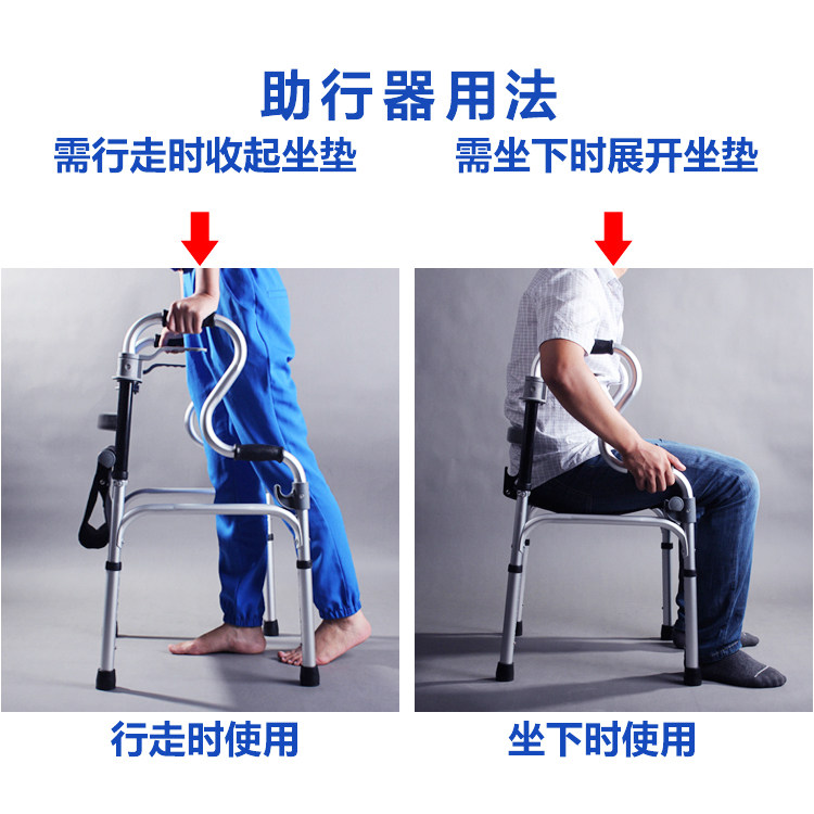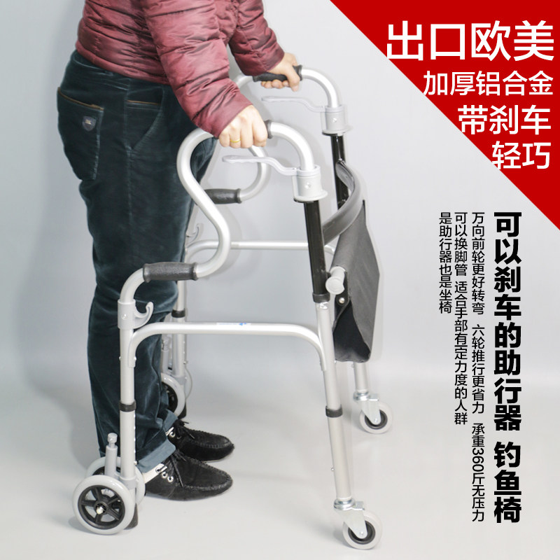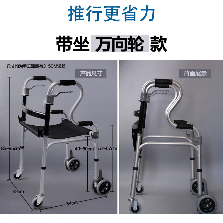 Elderly walker Four-legged wheel with sitting walker Multi-function chair cane Aluminum alloy telescopic cane for the elderly