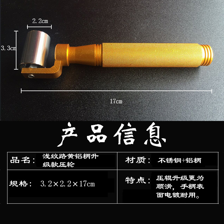 3.3cm light grained yellow aluminum handle pressure wheel 3.3cm smooth grained yellow aluminum handle pressure wheel 3.3cm light grained silver aluminum handle pressure wheel 3.3cm smooth grain silver aluminum handle pressure wheel 3.3cm deep grained yellow aluminum handle pressure wheel 3.3cm deep grained silver aluminum handle pressure wheel