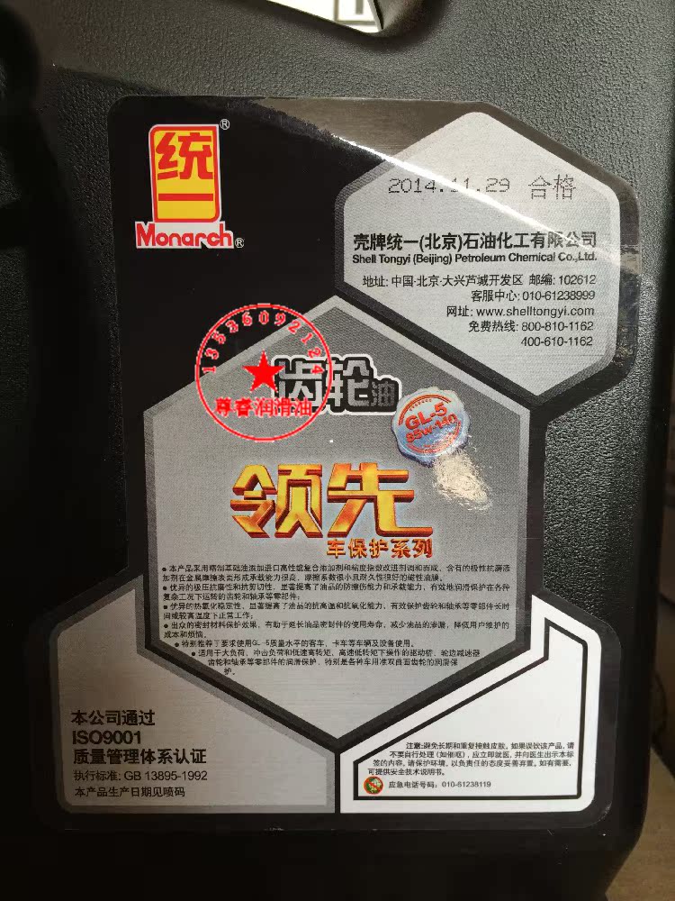 Unified Leading Car Protection Heavy Load Vehicle Gear Oil GL-5 Manual wave box Oil 85W-140 4L