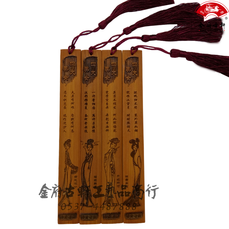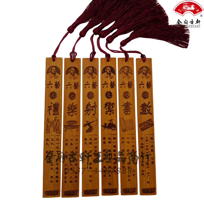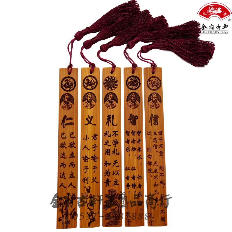 Creative bamboo carving bookmark Chinese style plum orchid bamboo chrysanthemum benevolence righteousness wisdom letter Qufu Confucius six arts can be customized