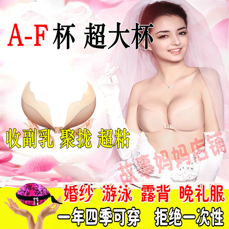 Silicone invisible bra sticker swimming ultra-thin breathable plus size bridal underwear large chest non-slip cream patch gathered