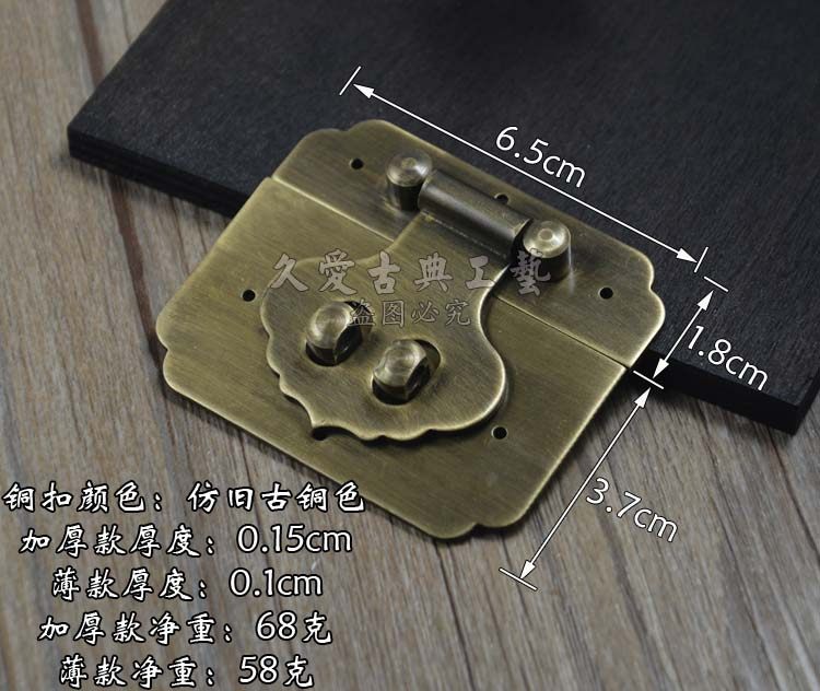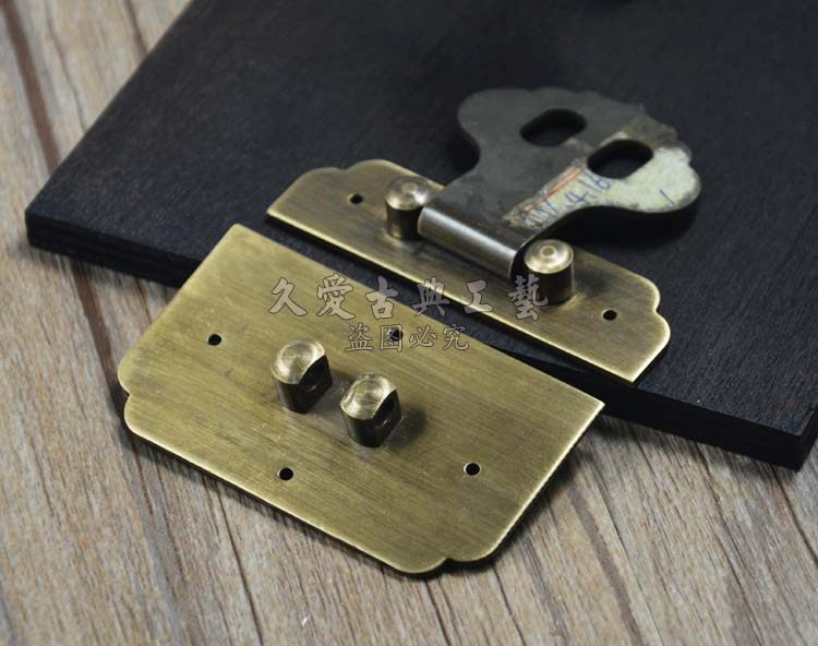 Chinese copper box buckle 6 CM antique copper lock wooden box lock box lock brass plate copper plate