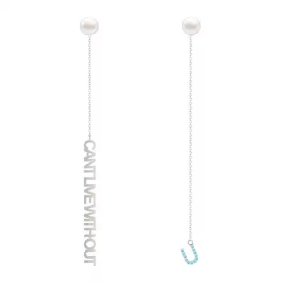Screw wanton thing Zhao Liying star with the same vertical stripe English letter earrings female long version temperament super fairy net red tide