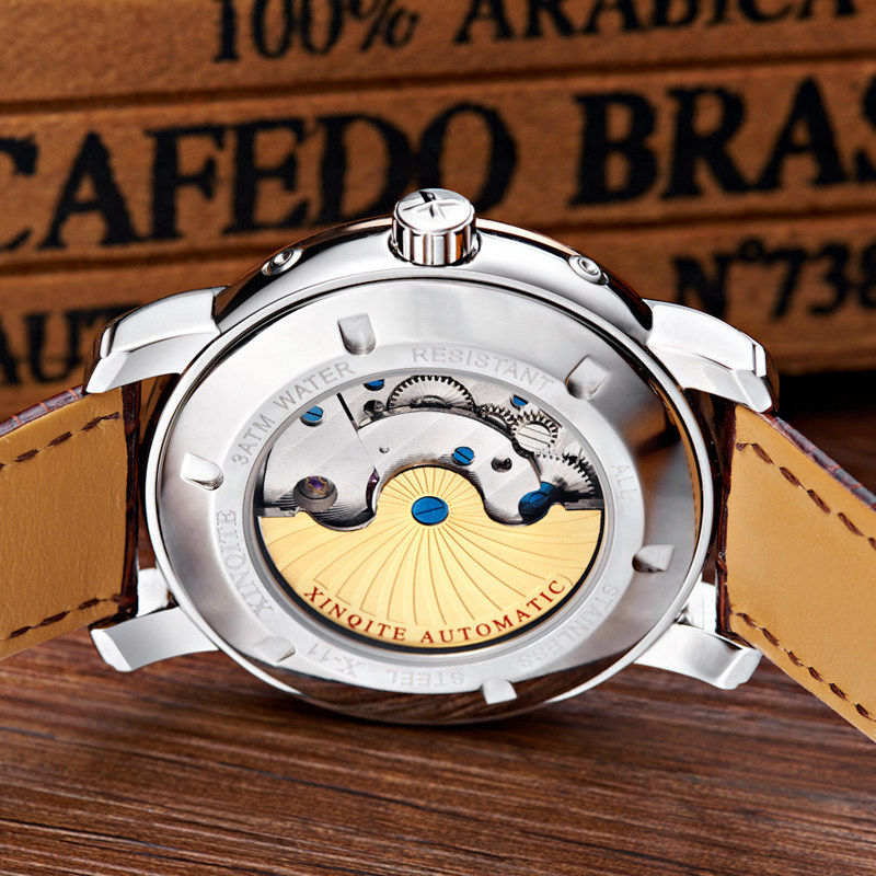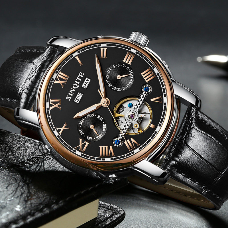 Flywheel Hand Watch Men's Fully Automatic Mechanical Watch True Leather Strap Fashion Hollowed-out Night Light Waterproof Large Dial Male Watch Function